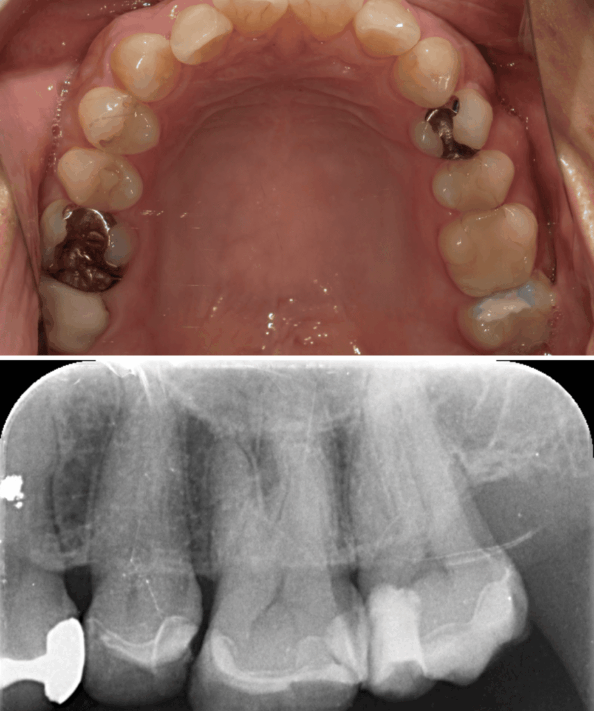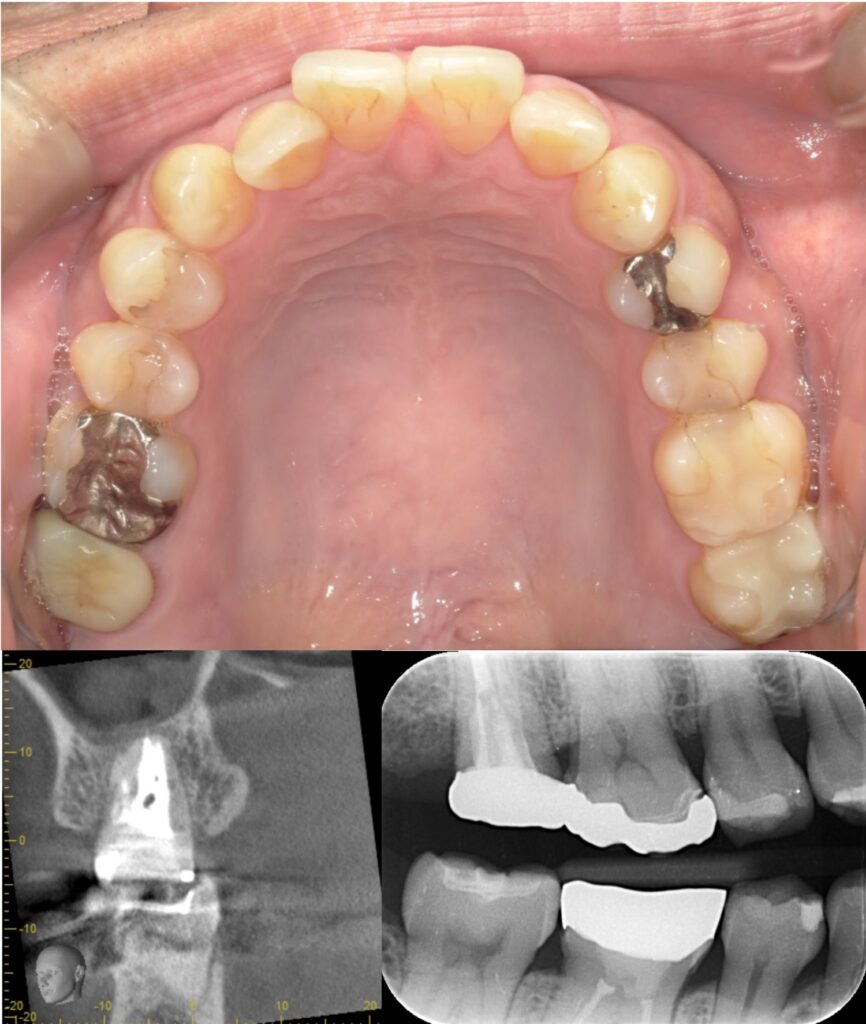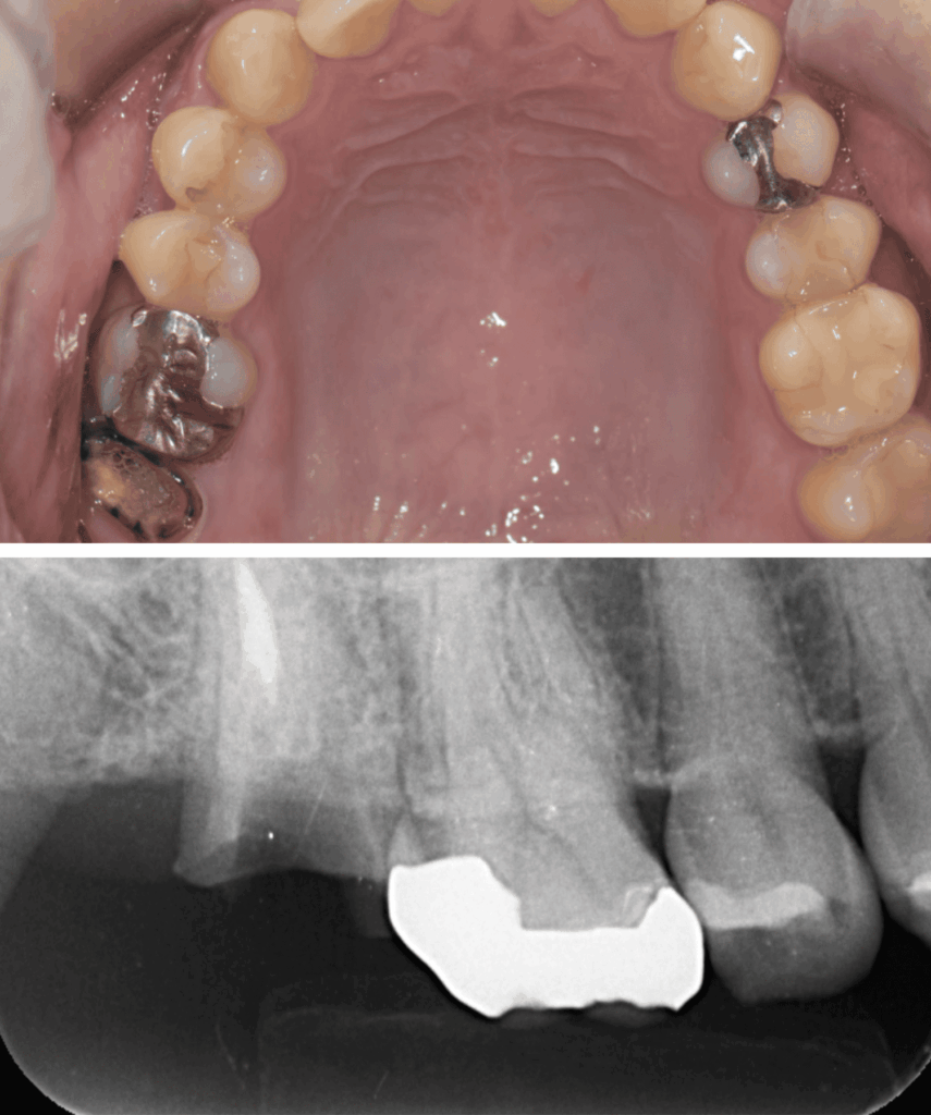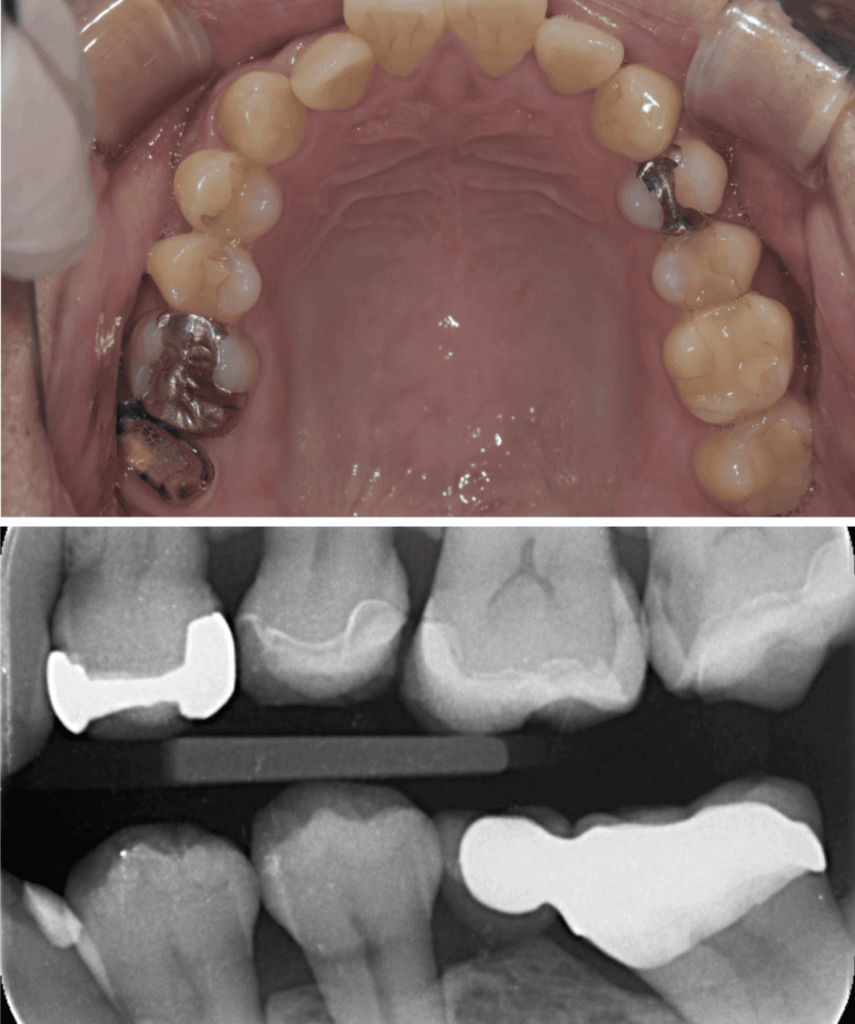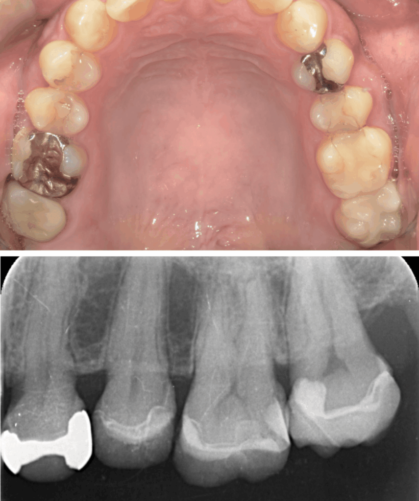 歯と歯の間のう蝕の為肉眼では分かりにくく、気づいた時には歯髄に近接し、保険治療では抜髄(神経を除くこと)になってしまうケースが多い。そのため処置前に、十分な精査と、患者さんが神経を残したいという希望の有無をしっかり相談・説明することが重要と考えています。